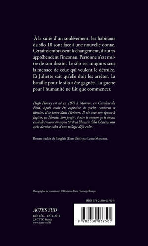 À la suite d'un soulèvement, les habitants du silo 18 sont face à une nouvelle donne. Certains embrassent le changement, d'autres appréhendent l'inconnu. Personne n'est maître de son destin. Le silo est toujours sous la menace de ceux qui veulent le détruire. Et Juliette sait qu'elle doit les arrêter. La bataille pour le silo a été gagnée. La guerre pour l'humanité ne fait que commencer.
