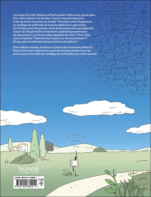 Le temps d’un été, Natacha et Paul rendent visite à leur grand-père Arix, récemment veuf. Arix a travaillé toute sa vie dans l’informatique, et notamment dans l’intelligence artificielle, suivant de près, des années 1970 à 2010, les évolutions des technologies déterministes puis prédictives. Natacha, sa petite-fille, a plongé tête baissée dans la dernière génération d’IA dite générative, quand Paul, à l’inverse, a préféré mettre de côté les technologies pour s’intéresser à la permaculture. Alors que leur mère, artiste peintre, a perdu un appel d’offres face à une IA, Natacha, Paul et Arix se lancent dans un débat passionné sur les enjeux et les risques de cette révolution, qui bouleverse déjà notre quotidien. Les IA sont-elles capables de créer ? Vont-elles nous remplacer ? Quel est leur impact sur l’environnement ? Et à quoi doit-on s'attendre d'autre dans un avenir proche ? Générations IA vise à explorer ce vaste univers et répondre à ces questions aux enjeux tant sociétaux, qu’économiques et climatiques. Une BD passionnante pour que chacun de nous puisse aiguiser son esprit critique et s’emparer de ce débat avec sérénité.