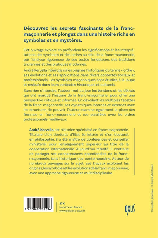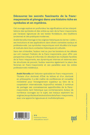 Cet ouvrage explore en profondeur les significations et les interprétations des symboles et des ordres au sein de la franc-maçonnerie, par l’analyse rigoureuse de ses textes fondateurs, des traditions anciennes et des pratiques modernes. André Kervella interroge ici les origines historiques du terme « ordre », ses évolutions et ses applications dans divers contextes sociaux et professionnels. Les symboles maçonniques sont étudiés à la loupe et resitués dans leurs contextes historiques et culturels. Sans rien s’interdire, l’auteur met au jour les tensions et les débats qui ont marqué l’histoire de la franc-maçonnerie, pour offrir une perspective critique et informée. En dévoilant les multiples facettes de la franc-maçonnerie, ses dynamiques internes et externes avec les structures de pouvoir, l’auteur examine également la place des femmes en franc-maçonnerie et ses parallèles avec les ordres professionnels médiévaux. Découvrez les secrets fascinants de la franc-maçonnerie et plongez dans une histoire riche en symboles et en mystères.