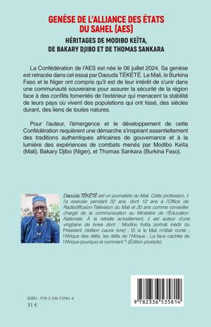 La Confédération de l'AES est née le 06 juillet 2024. Sa genèse est retracée dans cet essai par Daouda TÉKÉTÉ. Le Mali, le Burkina Faso et le Niger ont compris qu'il est de leur intérêt de s'unir dans une communauté souveraine pour assurer la sécurité de la région face à des conflits fomentés de l'extérieur qui menacent la stabilité de leurs pays où vivent des populations qui ont tissé, des siècles durant, des liens de toutes natures. Pour l'auteur, l'émergence et le développement de cette Confédération requièrent une démarche s'inspirant essentiellement des traditions authentiques africaines de gouvernance et à la lumière des expériences de combats menés par Modibo Kéita (Mali), Bakary Djibo (Niger), et Thomas Sankara (Burkina Faso).