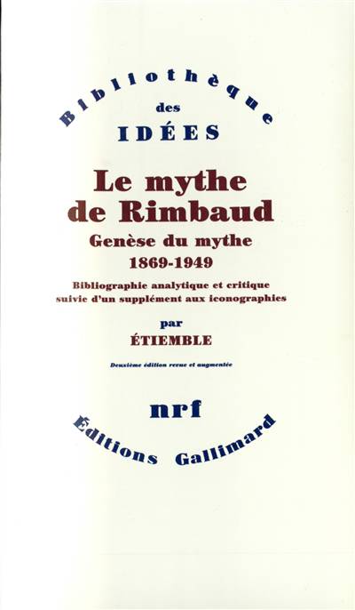 ""Les bibliographies, d'ordinaire, ça ne se lit pas. Il m'a donc semblé piquant d'en écrire une, et de la vouloir amusante. J'ai fait en sorte qu'on pût la lire dans le bon sens, et même à rebours, à la façon d'un roman policier ; aussi, qu'on y pût jouer ainsi qu'au jeu de l'oie. Toutefois, je ne saurais trop en déconseiller l'usage à ceux qui, pour mieux servir Rimbaud, n'ont su ou n'ont voulu que desservir son culte." Qand j'écrivais ces lignes, en 1954, je me demandais si vraiment ça se lirait, une bibliographie. Ma foi, oui, puisque voici une réimpression revue et augmentée, cependant que le dernier tome du Mythe, L'Année du Centenaire, en forme lui aussi de bibliographie analytique et critique, est en cours de réimpression. On n'a donc trouvé jusqu'ici que deux moyens d'obtenir un public : le meilleur, se faire ennuyeux au possible (ce dont je voudrais bien n'être pas trop capable) ; le moins bon, être bien amusant, ce qui me paraît un peu plus méritoire, encore que moins sublime. [...]" Étiemble.