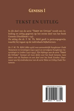 Dr. F. M. Th. Böhl (1882-1976) was aanvankelijk hoogleraar Oude Testament in Groningen (1912-1927) en vervolgens hoogleraar Assyriologie in Leiden (1927-1953). Zijn bijdrage aan de serie “Tekst en Uitleg” bestaat uit twee delen over het boek Genesis, twee delen over de Psalmen en een deel over het boek Exodus. Daarnaast was hij eindredacteur van de serie Tekst en Uitleg Oude Testament.