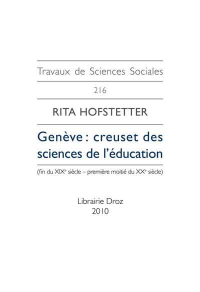 Etude sur l'évolution des sciences de l'éducation à Genève de la fin du XIXe siècle au début du XXe siècle. De nombreux professionnels représentant plusieurs disciplines y forment l'Institut Rousseau, premier temple consacré à la connaissance de l'enfant qui permet un renouveau de la psychologie de l'enfant.