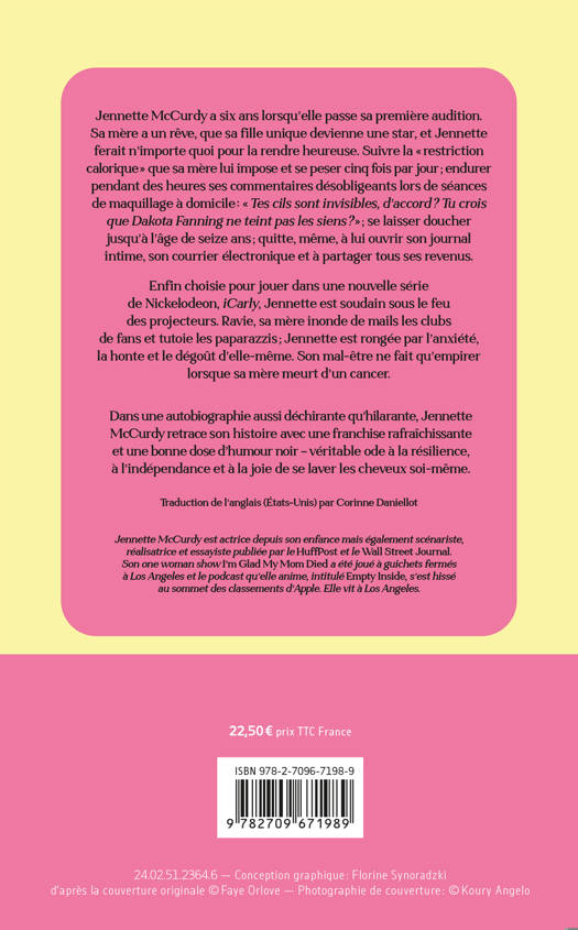 Dans cette autobiographie aussi déchirante qu'hilarante, Jennette McCurdy retrace son histoire avec une franchise rafraîchissante et une bonne dose d'humour noir - véritable ode à la résilience, à l'indépendance et à la joie de se laver les cheveux soi-même