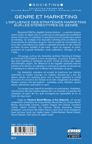 Cet ouvrage, écrit par des étudiant(e)s du Master Marketing & Stratégie de l'Université Paris-Dauphine et leurs enseignantes, se propose d'explorer les liens entre marketing et stéréotypes de genre. Partant du constat que, malgré d'incontestables progrès, des différences et des inégalités subsistent entre les hommes et les femmes, les auteur(e)s se sont posé la question du rôle joué par le marketing et la publicité dans la diffusion des stéréotypes de genre.