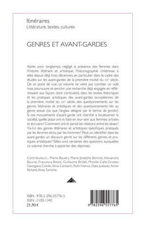 Après avoir longtemps négligé la présence des femmes dans l'histoire littéraire et artistique, l'historiographie s'intéresse à elles depuis trois décennies, en particulier dans le cadre des études sur les avant-gardes de la première moitié du XXe siècle. De ce point de vue, ce volume poursuit et enrichit une recherche déjà engagée en réfléchissant aux façons dont s'articulent, dans les textes théoriques et les pratiques artistiques des avant-gardes européennes de la première moitié du XXe siècle, des questionnements sur les genres littéraires et artistiques et des questionnements liés au genre sexué.