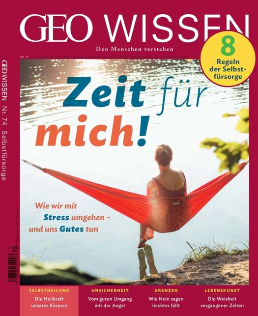Zeit für mich! Seit einigen Jahren ist der Begriff "Selbstfürsorge" weit verbreitet. Aber was ist eigentlich genau damit gemeint? GEO Wissen trägt Antworten zusammen, betrachtet das Thema in vielen Facetten und bietet Selbsttests sowie in einem Dossier acht Regeln für die Selbstfürsorge. Es kommen Expertinnen und Experten aus Wissenschaft und Therapie zu Wort, aus Coaching und Training. Neu ist die Idee also keineswegs. Doch für jede und jeden ist es immer wieder neu, sich auf den Weg zu machen - und die eigenen Gedanken und Gefühle ernst zu nehmen. Denn genau darum geht es in der Selbstfürsorge: Die eigenen Wünsche und Bedürfnisse auch einmal in den Mittelpunkt zu stellen, nicht nur die der Mitmenschen.