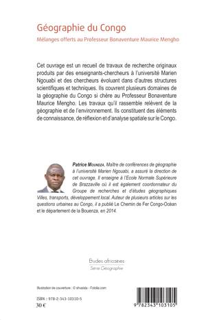 Cet ouvrage est un recueil de travaux de recherche originaux produits par des enseignants - chercheurs à l'université Marien Ngouabi et des chercheurs évoluant dans d'autres structures scientifiques et techniques. Ils couvrent plusieurs domaines de la géographie du Congo si chère au Professeur Bonaventure Maurice Mengho. Les travaux qu'il rassemble relèvent de la géographie et de l'environnement. Ils constituent des éléments de connaissance, de réflexion et d'analyse sur le Congo.