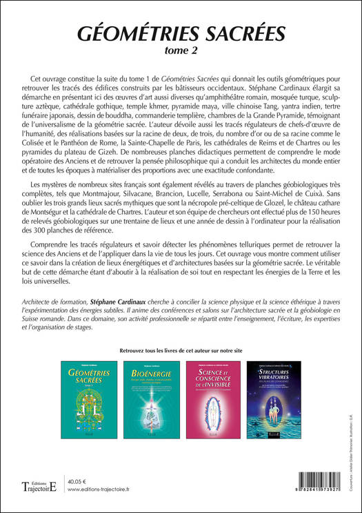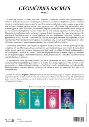 Stéphane Cardinaux élargit sa démarche en présentant ici des édifices aussi divers qu'ouvrage d'art romain, mosquée turque, ville aztèque, cathédrale gothique, temple khmer, ville Tang, tertre funéraire japonais, bouddha canonique, commanderie templière, les trois chambres de la Grande Pyramide, témoignant de l'universalisme de la «géométrie sacrée» qui a présidé à leur érection.