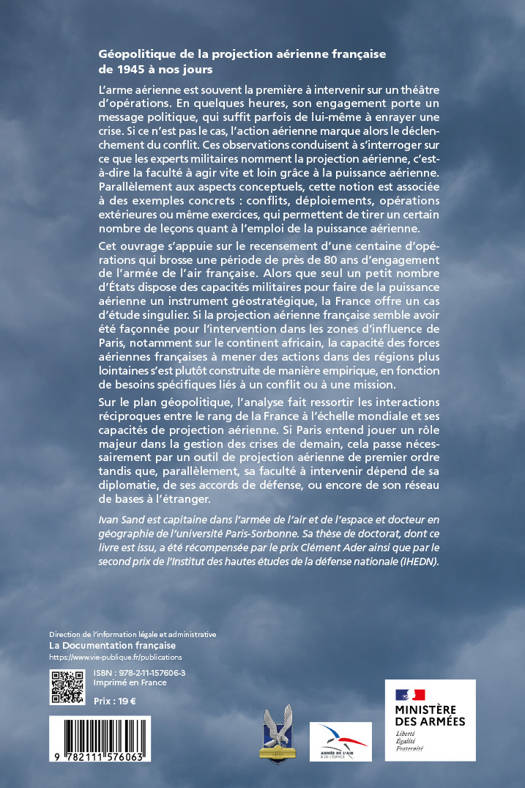 Cet ouvrage s’appuie sur le recensement d’une centaine d’opérations qui brosse une période de près de 80 ans d’engagement de l’armée française. Sur le plan géopolitique l’analyse fait ressortir les interactions réciproques entre le rang de la France à l’échelle mondiale et ses capacités de projection aérienne. La première partie s’articule en trois chapitres qui ont pour objectif de cerner précisément les différentes conceptions de la projection aérienne, puis de formuler des critères propres à l’étude. La deuxième partie reprend le découpage chronologique habituel de l’histoire militaire française depuis la fin de la Seconde Guerre mondiale. La troisième partie s’attache à trois aspects précis de cette question, qui correspondent à des exemples très différents de projection à plusieurs milliers de kilomètres de la métropole. La guerre d’Indochine (1945-1954) constitue un acte fondateur d’une géographie militaire aérienne, à différentes échelles.