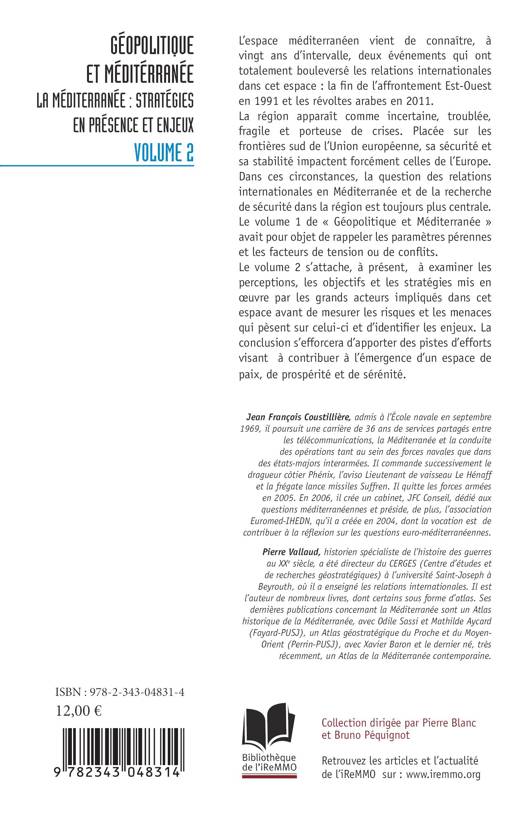 Après un bref rappel historique et géographique resituant dans le volume 1 les paramètres pérennes de l'espace méditerranéen, ses fractures et ses fragilités, ainsi que ses crises et tensions, ce volume 2 s'attache à examiner les perceptions, les objectifs et les stratégies mis en oeuvre par les grands acteurs impliqués dans cet espace, avant de mesurer les risques et les menaces qui pèsent sur celui-ci et d'identifier les enjeux.