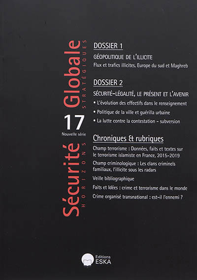Une première contribution propose une analyse géopolitique et criminologique des flux et trafics illicites entre Europe du Sud et Maghreb. La seconde contribution analyse l'impact du terrorisme sur la mise en place de mesures sécuritaires dans les villes et la lutte contre la "contestation à tendance subversive". En complément, données et faits sur le terrorisme islamique en France (2015-2018).