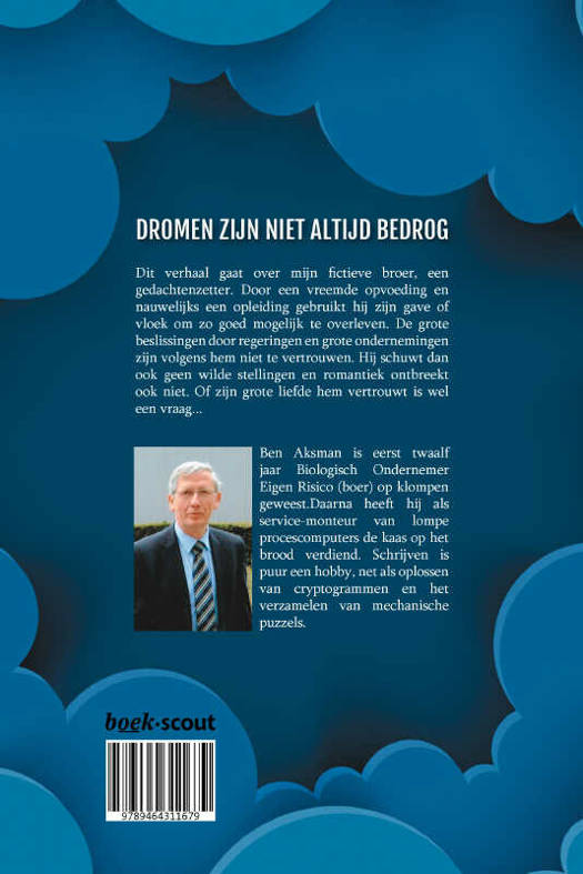 Dit verhaal gaat over mijn fictieve broer, een gedachtenzetter. Door een vreemde opvoeding en nauwelijks een opleiding gebruikt hij zijn gave of vloek om zo goed mogelijk te overleven. De grote beslissingen door regeringen en grote ondernemingen zijn volgens hem niet te vertrouwen. Hij schuwt dan ook geen wilde stellingen en romantiek ontbreekt ook niet. Of zijn grote liefde hem vertrouwt is wel een vraag...