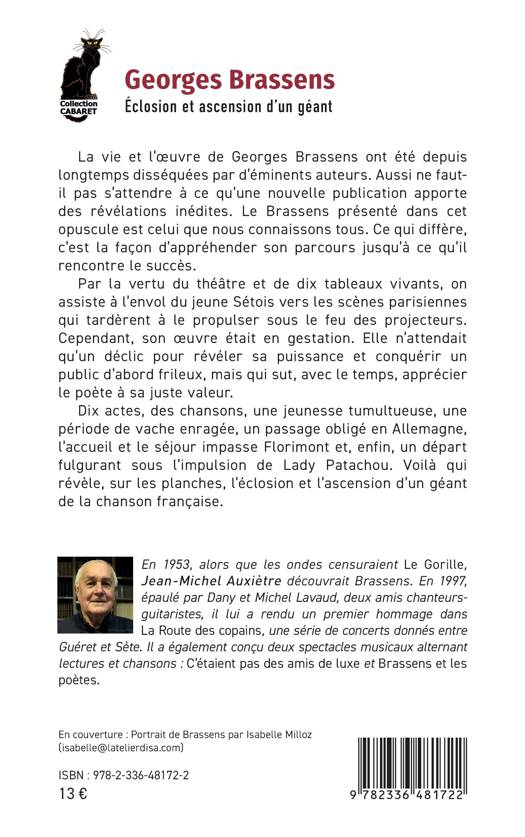 La vie et l’œuvre de Georges Brassens ont été depuis longtemps disséquées par d’éminents auteurs. Aussi ne faut-il pas s’attendre à ce qu’une nouvelle publication apporte des révélations inédites. Le Brassens présenté dans cet opuscule est celui que nous connaissons tous. Ce qui diffère, c’est la façon d’appréhender son parcours jusqu’à ce qu’il rencontre le succès.