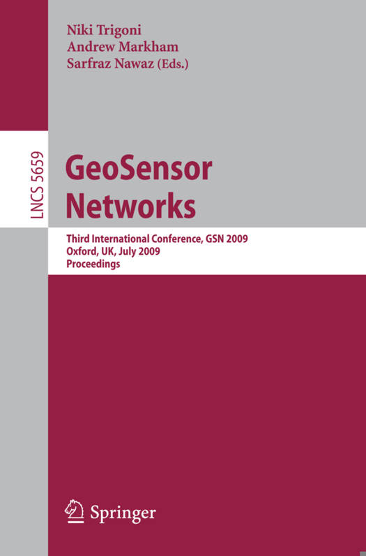 This volume serves as the conference proceedings for the Third International ConferenceonGeoSensorNetworks(GSN 2009)that washeld in Oxford, UK, in July 2009. The conference addressed issues related to the deployment of geos- sor networks and the collection and management of real-time geospatial data. This volume includes papers covering a variety of topics, ranging from sensing, routing and in-network processing, to data modelling, analysis, and appli- tions. It re?ects the cross-disciplinary nature of geosensor networks by bringing together ideas from di?erent ?elds, such as geographic information systems, d- tributed systems, wireless networks, distributed databases, and data mining. The papersincludedinthis volumepushthe frontiersofGSN researchins- eral new directions. First, they shift the traditional paradigm of ?xed resour- constrained sensor networks to more versatile scenarios involving mobile sensors with varying levels of computation, sensing, and communication capabilities. Second, emerging applications, such as urban sensing, are raising interesting new GSN challenges, such as participatory sensing, as well as the need to st- dardizeprotocolsandinterfaces, andintegratemultiple sensornetworks.Finally, technological advances in geosensor networks have enabled the collection of vast amounts of real-time high-resolution spatio-temporal data; the sheer volume of these data raises the need for e?cient data modelling, analysis, and pattern extraction techniques.
