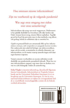 Hoe ontstaan nieuwe infectieziekten? Zijn we voorbereid op de volgende pandemie? Wat zegt onze omgang met ziekte over onze samenleving? Infectieziekten zijn terug van nooit weggeweest. Ondertussen is het pijnlijk duidelijk hoe kwetsbaar zelfs rijke landen zijn. Oude virussen keren terug, nieuwe blijven opduiken. Tegelijk groeit het besef dat preventie meer is dan medische zorg alleen: ook gedrag, beleid en solidariteit zijn er essentieel in. Gepokt en gemazeld biedt een omvattende blik op hoe infectieziekten ontstaan, zich verspreiden en aangepakt kunnen worden. Het onderzoekt niet enkel de biologie van ziekteverwekkers, maar ook de sociale, economische en ethische dimensies van infectieziekten, en de manier waarop samenlevingen zich daartegen kunnen wapenen. Vanuit concrete voorbeelden en recente uitbraken wordt duidelijk wat pandemische paraatheid inhoudt. Want hoe we met infectieziekten omgaan, zegt meer dan we denken over wat we echt belangrijk vinden als samenleving.
