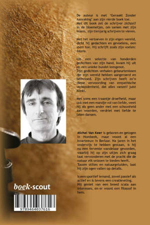 De auteur is met ‘Geraakt Zonder Aanraking’ aan zijn vierde boek toe. Met dit boek zet de schrijver zichzelf in de bloemetjes, om samen met zijn lezers, zijn tienjarig schrijven te vieren.Met het vertoeven in zijn eigen wereld, dicht hij gedachten en gevoelens, een stem toe. Hij schrijft zoals zijn voelen: Intens.Uit een selectie van honderden gedichten van zijn hand, kwam hij uit op een unieke bundel leesgenot.Zijn gedichten verhalen gebeurtenissen die zijn wereld hebben aangeroerd en beïnvloed. Zijn schrijven heeft zo’n diepe verwoording van empathische verbondenheid, dat alles vanzelf juist klinkt.Met soms een traantje droefheid, maar ook met een mandje vol van liefde, weet hij als geen ander met een schoonheid aan woorden, verdriet met liefde te laten dansen.