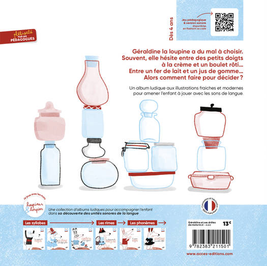 Un album ludique aux illustrations fraiches et modernes pour amener l’enfant à jouer avec les sons de langue. LES PLUS Un texte riche à l’âge de l’enfant Des illustrations pleines de tendresse réalisées par la talentueuse Cäät Un QR Code pour écouter l'histoire Une fabrication de qualité, parfaite pour les petites mains Un livre adapté à la lecture adulte-enfant pour un moment privilégié Une conception éthique et engagée