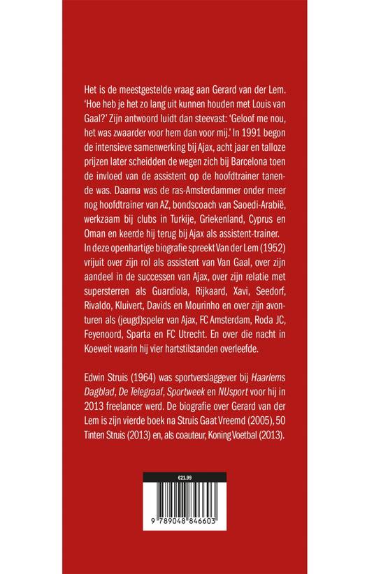 In deze openhartige biografie spreekt Van der Lem (1952) vrijuit over zijn rol als assistent van Van Gaal, over zijn aandeel in de successen van Ajax, over zijn relatie met supersterren als Mourinho, Guardiola, Xavi, Rivaldo, de broertjes De Boer, Rijkaard, Seedorf en Davids en over zijn avonturen als (jeugd)speler van Ajax, FC Amsterdam, Roda JC, Feyenoord, Sparta en FC Utrecht. En over die nacht in Koeweit waarin hij vier hartstilstanden overleefde.