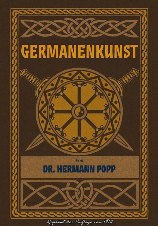 Der Autor Dr. Hermann Popp (1871-1943) warKunsthistoriker und verfasste mehrere Bücher;Germanenkunst hatte dabei die größte Auflage,da es nicht nur ein Verkaufsbuch war, sondern1913/1914 als Beigabe der Monatszeitschrift Heimatund Welt erschien. Die Zeitschrift wurde mitUnterstützung des Vereins für das Deutschtum imAusland herausgegeben und hatte eine beachtlicheAuflage von 20.000 Exemplaren (Januar 1914). Indem hier vorliegenden Werk räumt Popp mit vielen Vorurteilen in Bezugauf germanische Kunst auf und macht sie den Deutschen anschaulich -unterstützt durch über 90 Abbildungen. Damals in Fraktur gesetzt, liegt esin der jetzigen Ausgabe neu gesetzt gut lesbar vor.