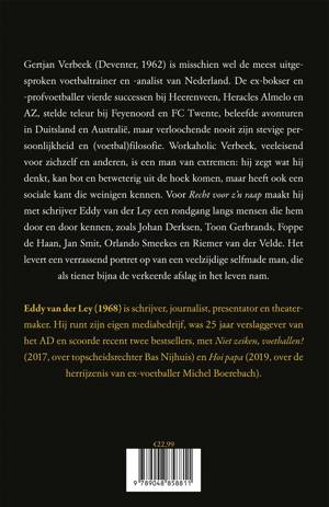 Gertjan Verbeek (Deventer, 1962) is misschien wel de meest uitgesproken voetbaltrainer en -analist van Nederland. De ex-bokser en -profvoetballer vierde successen bij Heerenveen, Heracles Almelo en AZ, stelde teleur bij Feyenoord en FC Twente, beleefde avonturen in Duitsland en Australië, maar verloochende nooit zijn stevige persoonlijkheid en (voetbal)filosofie. Workaholic Verbeek, veeleisend voor zichzelf en anderen, is een man van extremen: hij zegt wat hij denkt, kan nors en betweterig uit de hoek komen, maar heeft ook een sociale kant die weinigen kennen. Voor 'Recht voor de raap' maakt hij met schrijver Eddy van der Ley een rondgang langs mensen die hem door en door kennen, zoals Johan Derksen, Toon Gerbrands, Foppe de Haan, Orlando Smeekes en Riemer van der Velde. Het levert een verrassend portret op van een veelzijdige selfmade man, die als tiener bijna de verkeerde afslag in het leven nam.