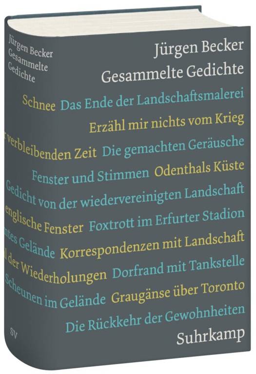 Zu Jürgen Beckers 90. Geburtstag am 10. Juli 2022 erscheint diese Sammlung sämtlicher zwischen 1971 und 2022 erschienenen Gedichtbände, mit einem umfangreichen Nachwort von Marion Poschmann. Der Band enthält alle Gedichte, dazu Collagen und Bilder von Rango Bohne und Fotos von Boris Becker. »Jürgen Beckers Werk verfolgt mit eindrucksvoller Konsequenz die Zeitstruktur individueller Wahrnehmung, die Gleichzeitigkeit des Ungleichzeitigen in der genauen Beobachtung alltäglicher Begebenheiten, aber auch in den Bewegungen der Erinnerung. So entsteht wie nebenbei eine Chronik der Bundesrepublik, von der Erfahrung des Krieges über die Wiedervereinigung bis hin zum Smartphonezeitalter. Die Gedichte zeigen uns als geschichtliche Wesen, voll innerer Brüche, immer am Rand des Unbekannten, Unüberschaubaren, Verschwindenden.« Marion Poschmann