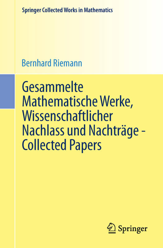 Bernhard Riemanns Werk hat bis heute wesentlichen Einfluß auf die Entwicklung der Mathematik genommen. Seine Ideen sind überraschend modern und prägen die heutige mathematische Forschung. Die Gesammelten Abhandlungen (1892) samt Supplement von 1902 waren seit langer Zeit vergriffen. R. Narasimhan hat die mühevolle Edition dieser Neuausgabe übernommen. Es können nur einige Höhepunkte genannt werden: - H. Weils Kommentare über Riemanns Habilitationsschrift - C.L. Siegel über Riemanns Nachlass zur analytischen Zahlentheorie - W. Wirtingers berühmter Vortrag beim internationalen Mathematikerkongress Heidelberg 1904 über Riemanns Vorlesungen über die hypergeometrische Reihe. Neben diesen historischen Würdigungen von Riemanns Werk gibt es aktuelle Beiträge, insbesondere zur Mechanik und über "shock waves" von S. Chandrasekhar, N. Lebovitz und P. Lax. Raghavan Narasimhan gibt in einer ausführlichen Einleitung eine Würdigung, insbesondere des funktionentheoretischen Werks von Bernhard Riemann. Ferner sind Fotos und zahlreiche Nachträge zum Lebenslauf aufgenommen worden. Eine Bibliographie mit mehr als 800 Literaturstellen erarbeitet von E. Neuenschwander und W. Purkert rundet diese Werkausgabe ab.