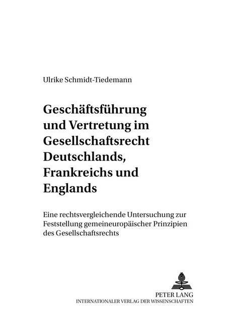 Im Rahmen der europäischen Rechtsangleichung hat sich einerseits die Harmonisierung des Gesellschaftsrechts als schwierig erwiesen. Andererseits wird die Erforderlichkeit einer Rechtsangleichung im Gesellschaftsrecht zunehmend in Frage gestellt. Vor dem Hintergrund dieser Schwierigkeiten untersucht die Arbeit für den Bereich der Geschäftsführung und Vertretung von Personen- und Kapitalgesellschaften, ob es im Gesellschaftsrecht der Mitgliedstaaten bereits Übereinstimmungen gibt, die eine weitere Harmonisierung entbehrlich machen. Dabei werden die Regelungen in Deutschland, Frankreich und England als wichtigste Repräsentanten des civil und common laws verglichen und gemeineuropäische Prinzipien herausgearbeitet.