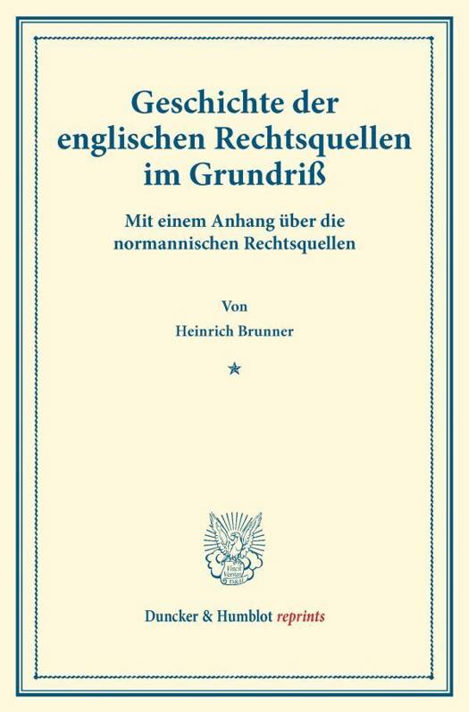 Heinrich Brunner, der österreichische Rechtshistoriker und zeitweilige Rektor der Berliner Universität, untersucht in diesem Werk die Geschichte der englischen Rechtsquellen. Brunner, der im englischen Recht ein Tochterrecht des deutschen Rechts sieht, gliedert seine Ausführungen dabei in drei Abschnitte: Der erste Abschnitt ist den angelsächsischen Rechtsquellen gewidmet, der zweite Abschnitt den Quellen des anglonormannischen Rechts und der dritte Abschnitt den englischen Rechtsquellen seit dem 14. Jahrhundert bis Blackstone. Im Vorwort führt Brunner auch an, warum sich eine Beschäftigung mit den englischen Rechtsquellen von einem deutschen Standpunkt aus lohnt: "Das englische Recht ist eine Fundgrube nicht bloß für die Erforschung unseres älteren Rechtes, sondern auch für das Verständnis unseres geltenden Rechtes, da wir einzelne Institutionen, die zuerst auf englischem Boden ihre eigenartige Ausbildung erhielten, unmittelbar aus England oder auf dem Umwege über Frankreich rezipiert haben" (S. 2). Das Werk wird abgerundet durch einen Anhang, der die Quellen des normannischen Rechts zum Gegenstand hat.