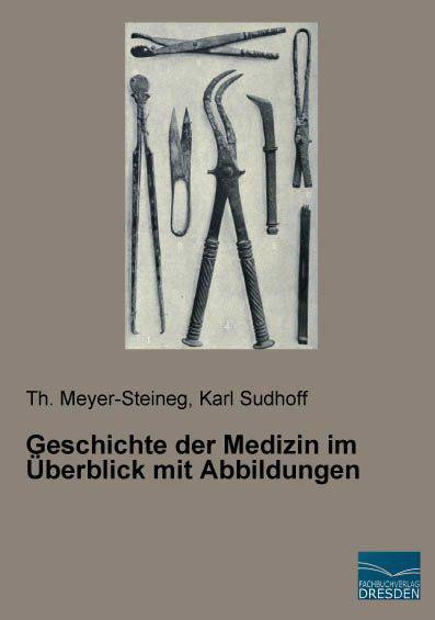 Geschichte der Medizin im Überblick mit 208 S/W- Abbildungen. Theodor Meyer-Steineg (geboren als Theodor Meyer; 9. Mai 1873 in Bückeburg; 10. Mai 1936 in Ospedaletti) war ein deutscher Jurist, Augenarzt und Komponist sowie bedeutender Medizinhistoriker. 1911 wurde er außerordentlicher Professor für die Geschichte der Medizin. Im gleichen Jahr begründete er die Anstalt für Geschichte der Medizin in Jena mit. Bereits 1909 war er maßgeblich an der Zusammenstellung der Medizinhistorischen Sammlung am Universitätsklinikum Jena beteiligt, darunter 80 antike Gegenstände, gesammelt in Griechenland, Kreta und Kleinasien. Darüber hinaus war er von 1912 bis 1932 Herausgeber der Jenaer medizinhistorischen Beiträge. 1921 veröffentlichte er mit Karl Sudhoff das Standardwerk Geschichte der Medizin. (Wiki)