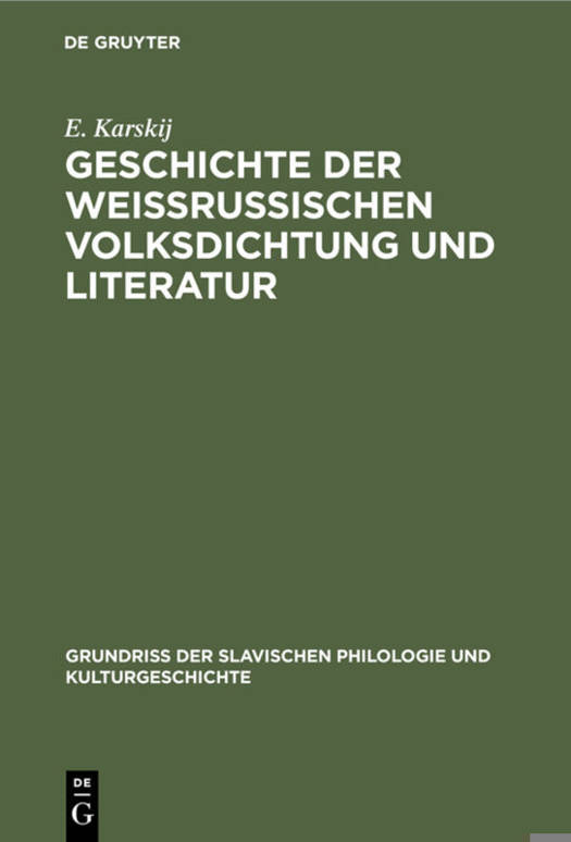 Geschichte Der Weissrussischen Volksdichtung Und Literatur