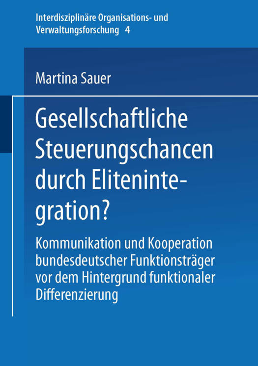 Im Mittelpunkt des Buches steht die Frage nach den Möglichkeiten des politischen Systems, gesellschaftliche Prozesse zu steuern. Heutige Problemlagen machen eine Anpassung der politischen Steuerungsinstrumente notwendig. Auf der Grundlage des Konzepts kooperativer Verhandlungssysteme zwischen gesellschaftlichen Funktionseliten werden die Bedingungen erfolgreicher politischer Steuerung theoretisch hergeleitet und anschließend empirisch untersucht.