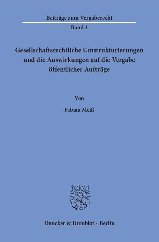 Gesellschaftsrechtliche Veränderungen bei Unternehmen sind unterschiedlich motiviert und können nicht immer auf die Teilnahme an einem Vergabeverfahren abgestimmt werden. Es stellt sich daher die Frage, wie das Vergaberecht auf die (teils notgedrungenen) gesellschaftsrechtlichen Vorgänge reagiert und welche Konsequenzen für die Beteiligten mit einer gesellschaftsrechtlich bedingten Veränderung in der Person des Bieters verbunden sind. Gegenstand der Untersuchung ist die Zulässigkeit von gesellschaftsrechtlichen Umstrukturierungen während eines laufenden Vergabeverfahrens unter Berücksichtigung der gesellschafts- und vergaberechtlichen Prinzipien und Rechtsfolgen. Zur Feststellung einer vergaberechtlich relevanten Änderung in der Person des Bieters wird zunächst der Begriff der "Bieteridentität" definiert. Daran anschließend werden die eignungsrelevanten Auswirkungen erörtert. Im Ergebnis wird eine Änderung in der Person des Bieters unter bestimmten Bedingungen als zulässig angesehen.