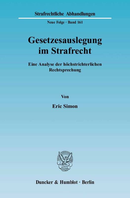 Eric Simon unternimmt es daher, den Stand der Rechtsprechung zur Methode der Normkonkretisierung für den Bereich der Strafrechts umfassend aufzubereiten. Aufgrund der dort geltenden Formenstrenge (Art. 103 II GG) ist dieses Rechtsgebiet als Prüfstein für methodisches Vorgehen besonders geeignet. Ausdrückliche wie implizite Stellungnahmen des BGH zu Methodenfragen werden systematisiert und auf Widersprüche hin untersucht. Dabei orientiert sich der Autor am klassischen Auslegungskanon und setzt Schwerpunkte bei der grammatikalischen und historischen Auslegung, da dort entscheidende Weichen gestellt werden (Auslegungsgrenze, subjektive/objektive Theorie). Über den Kanon hinaus wird nach Anhaltspunkten für eine von der Rechtsprechung bevorzugte Rangfolge der Auslegungskriterien gesucht. Einsichten der Methodenlehre fließen stets in die Urteilsanalysen ein. Insgesamt entsteht ein wertender Rückblick auf 50 Jahre Auslegungspraxis des BGH.