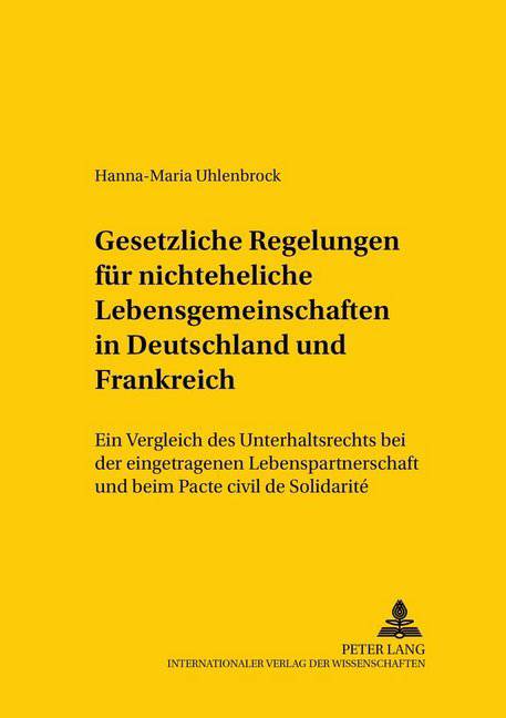 Deutschland und Frankreich haben gänzlich unterschiedliche Rechtsinstitute für nichteheliche Lebensgemeinschaften geschaffen. In Deutschland wurde das familienrechtliche Institut der eingetragenen Lebenspartnerschaft allein für gleichgeschlechtliche Paare eingeführt. In Frankreich haben sowohl hetero- als auch homosexuelle Paare die Möglichkeit, durch den Abschluss eines zivilrechtlichen Solidaritätspaktes (Pacte civil de Solidarité) ihr gemeinsames Leben zu regeln. Diese rechtsvergleichende Arbeit gibt einen Überblick über Entstehungsgeschichte und Inhalte der eingetragenen Lebenspartnerschaft und des Pacte civil de Solidarité. Als Schwerpunkt wird das Unterhaltsrecht bei der eingetragenen Lebenspartnerschaft und beim Pacte civil de Solidarité behandelt und miteinander verglichen. Insbesondere etwaige nachpartnerschaftliche Unterhaltspflichten sind für die beteiligten Menschen von großer ökonomischer Wichtigkeit.