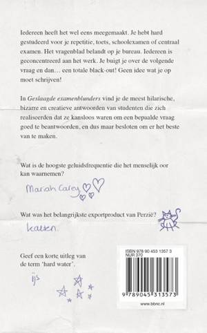Iedereen heeft het wel eens meegemaakt. Je hebt hard gestudeerd voor je repetitie, toets, schoolexamen of centraal examen. Het vragenblad belandt op je bureau. Iedereen is geconcentreerd aan het werk. Je buigt je over de volgende vraag en dan ... een totale black-out! Geen idee wat je op moet schrijven! In Geslaagde examenblunders vind je de meest hilarische, bizarre en creatieve antwoorden van studenten die zich realiseerden dat ze kansloos waren om een bepaalde vraag goed te beantwoorden, en dus maar besloten om er het beste van te maken.