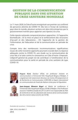 Le 11 mars 2020, la Côte d'Ivoire enregistrait son premier cas confirmé de personne atteinte de COVID-19. Dès lors à l'instar de nombreux pays dans le monde, plusieurs actions ont alors été entreprises par le gouvernement ivoirien pour apporter une riposte à la crise. Cette riposte nationale comprend plusieurs approches: (i) l'approche biomédicale; (ii) la mise en place et le renforcement des structures d'accueil et des laboratoires; (iii) l'approche de la gestion de l'information, de l'éducation et de la communication en période de crise. Compte tenu des nombreuses incommunications significatives issues de cette troisième approche pourtant cruciale dans la réponse adéquate contre la COVID-19, une étude sur la communication de crise liée à la lutte contre le coronavirus en Côte d'Ivoire s'imposait. L'objectif général du projet est de contribuer à l'amélioration de la communication pour la santé en période de crise sanitaire de type COVID-19.