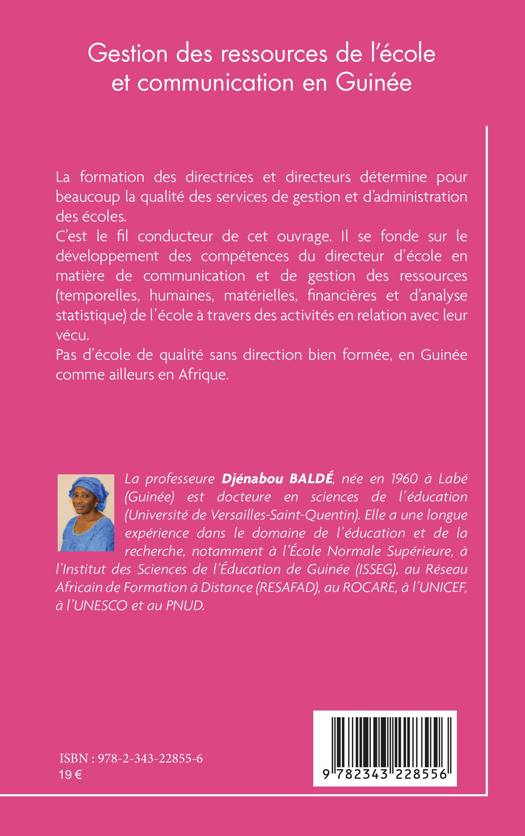 La formation des directrices et directeurs détermine pour beaucoup la qualité des services de gestion et d'administration des écoles. Cet ouvrage se fonde sur le développement des compétences du directeur d'école en matière de communication et de gestion des ressources (temporelles, humaines, matérielles, financières et d'analyse statistique) de l'école à travers des activités en relation avec leur vécu. Pas d'école de qualité sans direction bien formée, en Guinée comme ailleurs en Afrique.