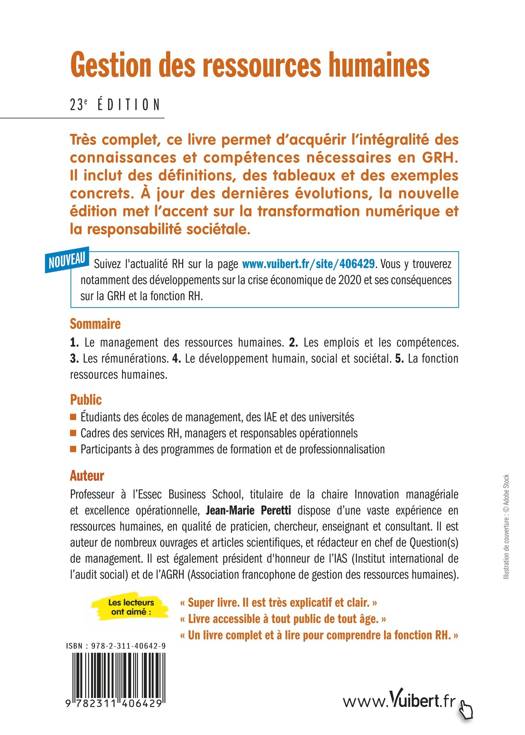 Synthétique et opérationnel, ce livre permet d’acquérir l’intégralité des connaissances et compétences nécessaires en GRH (gestion des ressources humaines). Il inclut :