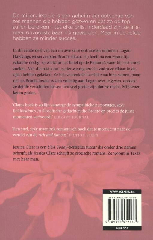 De miljonairsclub is een geheim genootschap van zes mannen die hebben gezworen dat ze de top zullen bereiken - tot elke prijs. Inderdaad zijn ze allemaal onvoorstelbaar rijk geworden. Maar in de liefde hebben ze minder succes... In dit eerste deel van een nieuwe serie ontmoeten miljonair Logan Hawkings en serveerster Bronte elkaar. Hij heeft na een zware tijd vakantie nodig, zij werkt in het hotel op de Bahama's waar hij rust komt zoeken. Van die rust komt echter weinig terecht zodra ze elkaar in de ogen hebben gekeken. Ze beleven enkele heerlijke nachten samen, maar net als Bronte bereid is zich volledig aan Logan over te geven, ontdekt ze dat de verschillen tussen hen veel groter zijn dan ze dacht. Miljoenen keren groter...