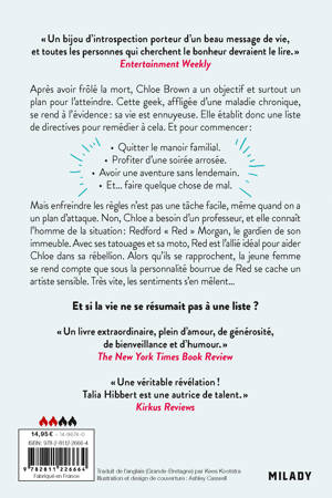 Après avoir frôlé la mort, Chloe Brown a un objectif et surtout un plan pour l'atteindre. Cette geek qui souffre d'une maladie chronique se rend à l'évidence : sa vie est ennuyeuse. Elle établit donc une liste de six directives pour remédier à cela. Parmi elles, avoir une aventure sans lendemain, s'amuser pendant une soirée arrosée, ou encore faire quelque chose de mal.
