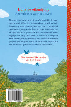 Luna de eilandpony Een vriendin voor het leven! Elisa en haar pony Luna zijn onafscheidelijk. Op haar merrie voelt Elisa zich zelfverzekerd, vrolijk en vrij. Op een dag verschijnen tijdens een ritje op het eiland drie oudere jongens die Elisa zo laten schrikken dat ze bijna van haar pony valt. Elisa is woedend, maar tegelijk ook bang. Wat moet ze doen als er nog een keer zoiets gebeurt? Wanneer een van de drie brutale jongens een ongeluk krijgt in de duinen, leert Elisa het antwoord: gewoon haar merrie vertrouwen… Voor avontuurlijke meisjes van 8 tot 11 jaar.