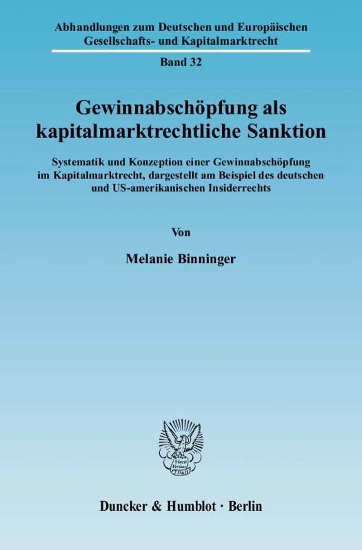 Mehr Regulierung für den Kapitalmarkt? Melanie Binninger beschäftigt sich mit der Frage, ob eine Gewinnabschöpfung eine sinnvolle Ergänzung des kapitalmarktrechtlichen Sanktionensystems darstellt. Andere Rechtsgebiete wie das Wettbewerbs- und Kartellrecht, das Strafrecht, das allgemeine Zivilrecht sowie das US-amerikanische Kapitalmarktrecht enthalten bereits dahingehende Regelungen. Erfahrungen mit diesen Normen sollen Aufschluss darüber geben, ob und wie eine Gewinnabschöpfung im Kapitalmarktrecht sinnvoll konzipiert werden kann. Insbesondere bei Insiderhandel und Verstößen gegen die Meldepflichten bei Directors' Dealings ( 14, 15a WpHG) könnten so rechtswidrig erzielte Gewinne abgeschöpft werden. Untersucht wird, wer den Gewinn geltend machen kann, an wen der Gewinn auszukehren ist und wie der Gewinn berechnet werden kann.