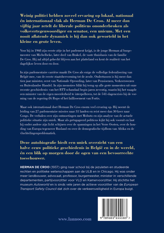 In 2018 wordt de liberale politicus Herman De Croo 80 en zetelt hij 50 jaar als volksvertegenwoordiger en als senator. Weinig politici hebben zoveel ervaring op lokaal, nationaal en internationaal vlak. Met een nooit aflatende dynamiek is hij dan ook geworteld in het kleine en het grote leven.