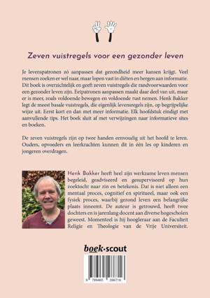 Je levenspatronen zó aanpassen dat gezondheid meer kansen krijgt. Veel mensen zoeken er wel naar, maar lopen vast in diëten en bergen aan informatie. Dit boek is overzichtelijk en geeft zeven vuistregels die randvoorwaarden voor een gezonder leven zijn. Eetpatronen aanpassen maakt daar deel van uit, maar er is meer, zoals voldoende bewegen en voldoende rust nemen. Henk Bakker legt de meest basale vuistregels, die eigenlijk levensregels zijn, op begrijpelijke wijze uit. Eerst kort en dan met meer informatie. Elk hoofdstuk eindigt met aanvullende tips. Het boek sluit af met verwijzingen naar informatieve sites en boeken. De zeven vuistregels zijn op twee handen eenvoudig uit het hoofd te leren. Ouders, opvoeders en leerkrachten kunnen dit in één les op kinderen en jongeren overdragen.