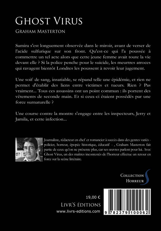 Samira s’est longuement observée dans le miroir, avant de verser de l’acide sulfurique sur son front. Qu’est-ce qui l’a poussée à commettre un tel acte alors que cette jeune femme avait toute la vie devant elle ? Si la police penche pour le suicide, les meurtres atroces qui ravagent bientôt Londres les poussent à revoir leur jugement. Une soif de sang, insatiable, se répand telle une épidémie, et rien ne permet d’établir des liens entre victimes et tueurs. Rien ? Pas vraiment… Tous ces assassins ont un point commun : ils portent des vêtements de seconde main. Et si ceux-ci étaient possédés par une force surnaturelle ? Une course contre la montre s’engage entre les inspecteurs, Jerry et Jamila, et cette infection…