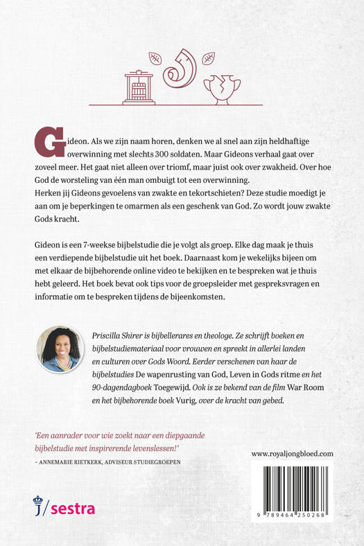 Gideon is een 7-weekse bijbelstudie voor groepen, met een combinatie van zelfstudie en video-onderwijs. Het boek bevat een inlogcode die toegang geeft tot de online video’s. Ook staan er tips in voor groepsleiders, met extra informatie en gespreksvragen.