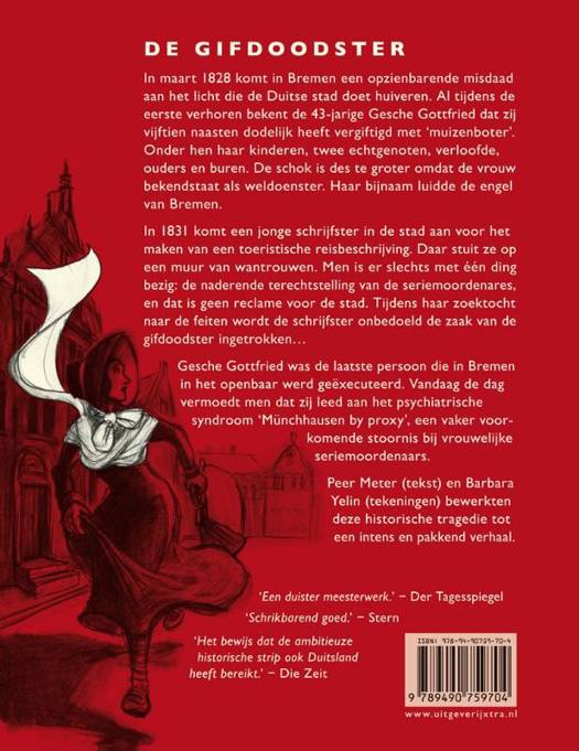 In maart 1828 komt in Bremen een opzienbarende misdaad aan het licht die de Duitse stad doet huiveren. Al tijdens de eerste verhoren bekent de 43-jarige Gesche Gottfried dat zij vijftien naasten dodelijk heeft vergiftigd met ‘muizenboter’. Onder hen haar kinderen, twee echtgenoten, verloofde, ouders en buren. De schok is des te groter omdat de vrouw bekendstaat als weldoenster. Haar bijnaam luidde