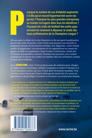 Dix ans après le début de la crise financière et dix ans après la publication de son best-seller Econochoc, Geert Noels nous propose une nouvelle et audacieuse analyse de l'économie mondiale. Son diagnostic : notre monde souffre de gigantisme. Les entreprises et les organisations ne cessent de gagner en taille et en puissance, tuant la saine concurrence, créant une croissance non durable et mettant l'humain sous pression, avec comme conséquence la hausse du nombre de maladies dites de civilisation, comme le burn-out et l'obésité.