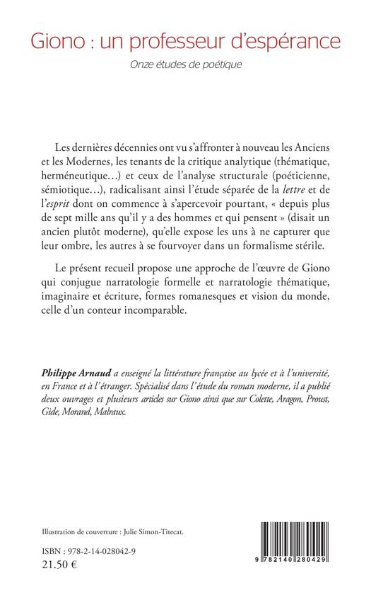 Les dernières décennies ont vu s’affronter à nouveau les Anciens et les Modernes, les tenants de la critique analytique (thématique, herméneutique...) et ceux de l’analyse structurale (poéticienne, sémiotique...), radicalisant ainsi l’étude séparée de la lettre et de l’esprit dont on commence à s’apercevoir pourtant, « depuis plus de sept mille ans qu’il y a des hommes et qui pensent » (disait un ancien plutôt moderne), qu’elle expose les uns à ne capturer que leur ombre, les autres à se fourvoyer dans un formalisme stérile. Le présent recueil propose une approche de l’oeuvre de Giono qui conjugue narratologie formelle et narratologie thématique, imaginaire et écriture, formes romanesques et vision du monde, celle d’un conteur incomparable.